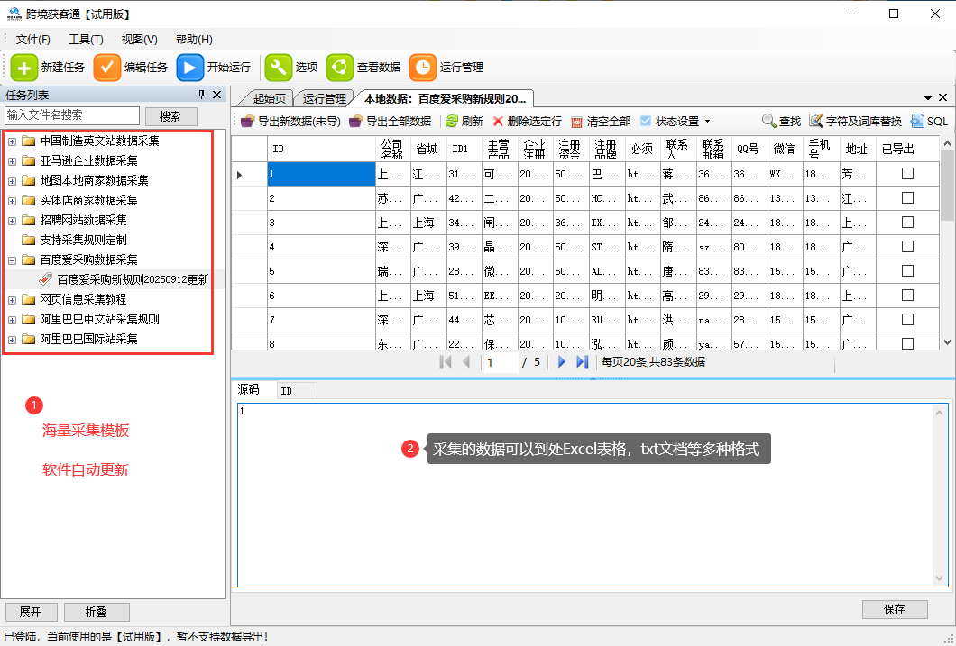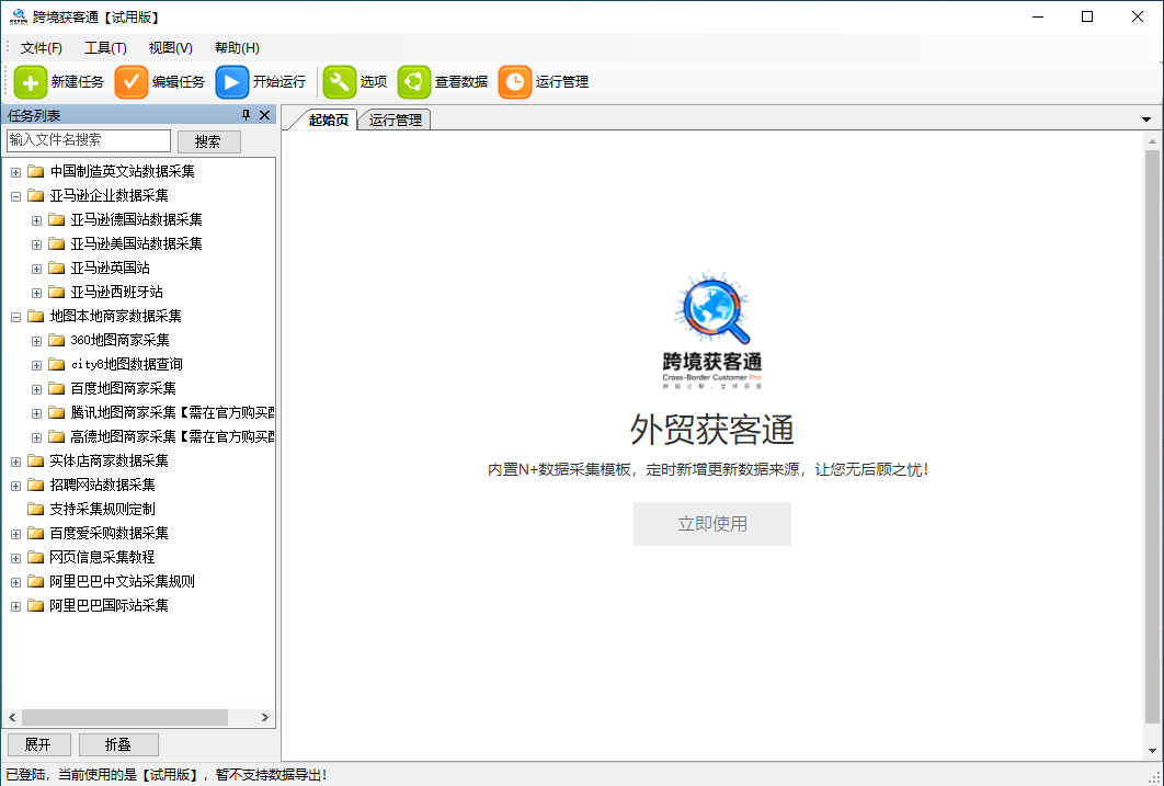 支持亚马逊、阿里巴巴国际站、中国制造英文站、环球资源英文站客户数据采集导出