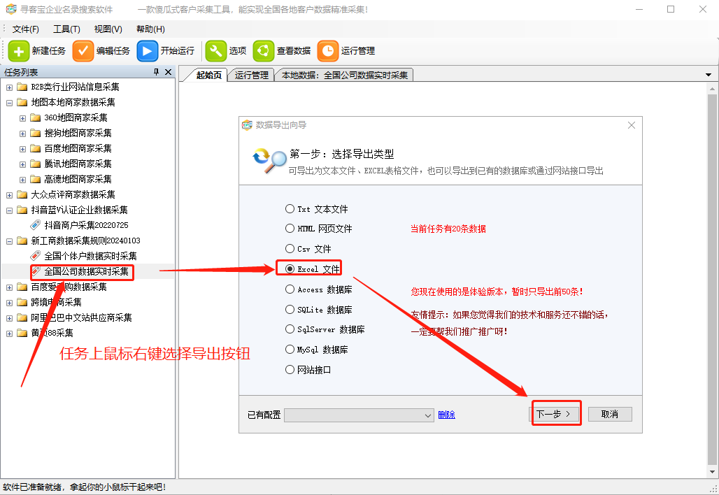 轻量使用者:可以选择导出表格文件或者TXT文本数据